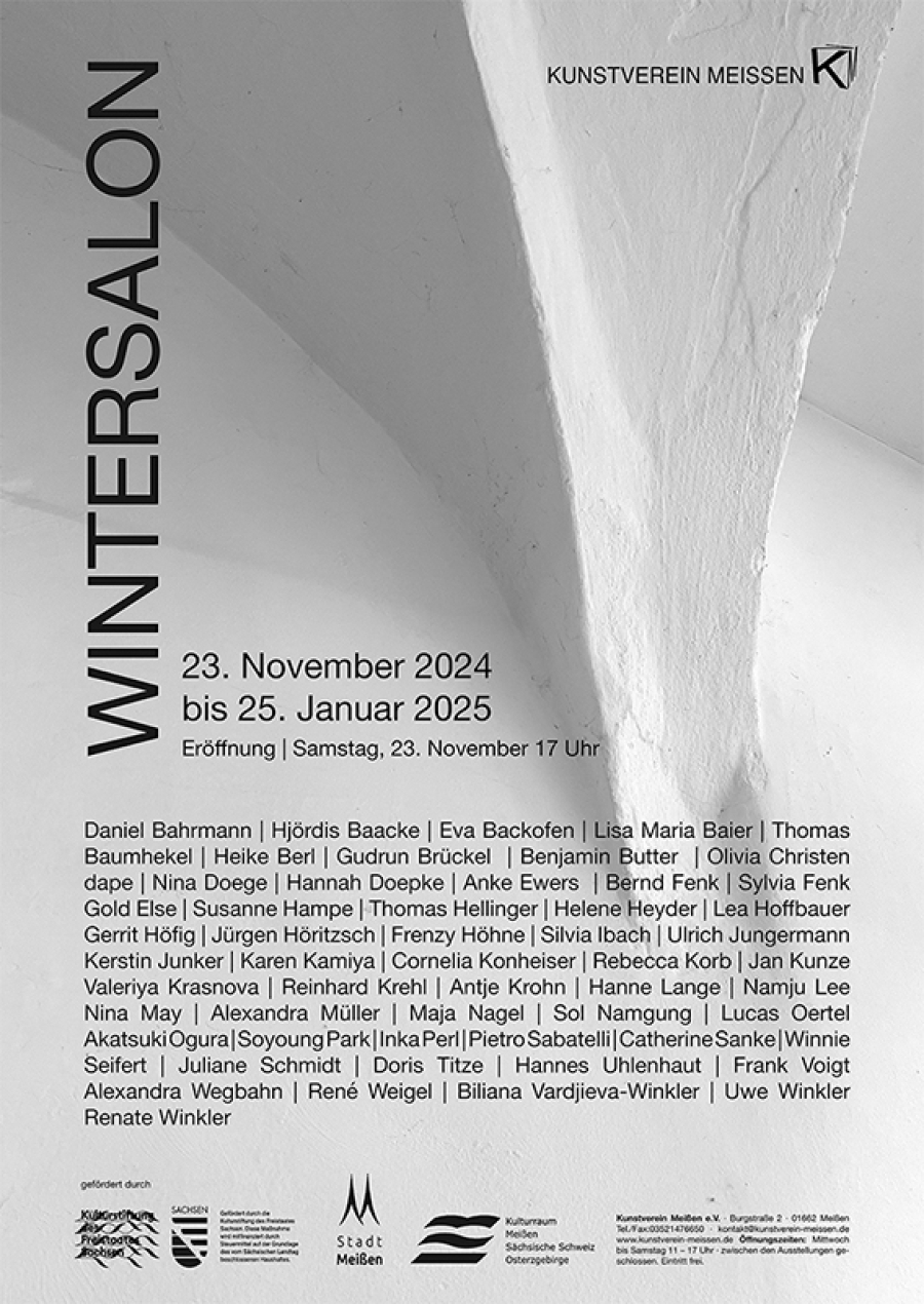 Der WINTERSALON des Kunstverein Meißen knüpft an die Tradition der Jahresausstellungen vieler Kunstvereine an, in denen Künstlerinnen und Künstler mit einem regionalen Bezug die Möglichkeit erhalten, ihre Arbeiten der letzten Jahre der Öffentlichkeit zu präsentieren und diese zu verkaufen. Zugleich gibt die Ausstellung einen Überblick über Themen, Motive, Arbeitsfelder und Inhalte sächsischer Künstlerinnen und Künstler und damit einen Einblick in aktuelle Entwicklungen und Tendenzen der regionalen Kunstszene.
